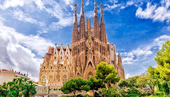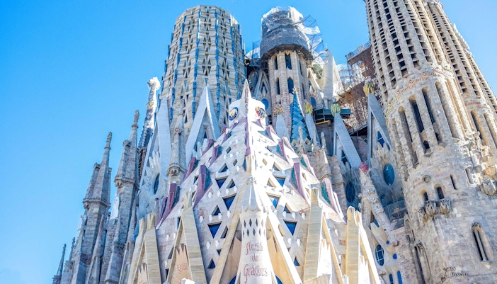 Book the tower access ticket to ride the elevator up one of the facade towers and gaze out over the sweeping views of terracotta rooftops, bustling streets, and the glittering blue Mediterranean.