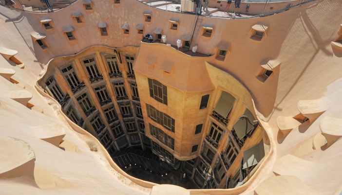 In der Casa Milà wurden zwei große Innenhöfe gebaut, um für eine ausreichende Belüftung und natürliche Beleuchtung in allen Zimmern zu sorgen. Als es gebaut wurde, hatten die meisten Gebäude nur einen Innenhof, um die Küche und die Toiletten zu belüften. Aber da die Casa Milà 16 Wohnungen hat, fügte Antoni Gaudí zwei Patios hinzu, um sicherzustellen, dass keines der Zimmer erdrückend ist.