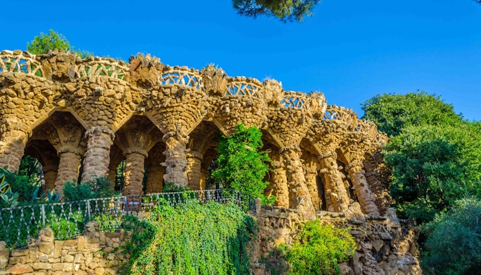 Creada con el colaborador de Gaudí Josep Maria Jujol, esta lagartija de Gaudí está hecha con fragmentos de mosaico rotos utilizando la técnica trencadís, el estilo característico de Gaudí. Sus vibrantes escamas son un mosaico de colores, formas y texturas, dispuestas en un alegre caos asimétrico, igual que el resto del parque.