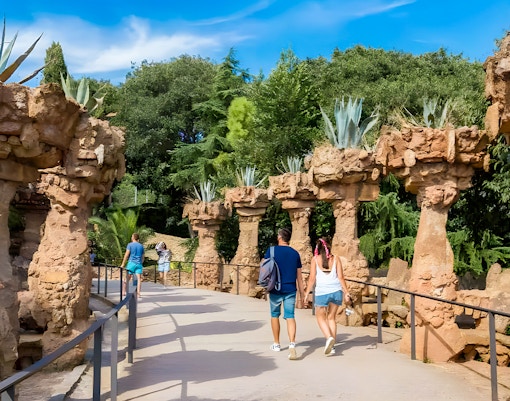 El Park Güell está situado entre los barrios de El Coll, La Salut, Vallcarca i els Penitents, El Carmel y Can Baró, en los distritos de Gràcia y Horta-Guinardó. Abarca las laderas de la colina de Tres Creus y de la colina de El Muntanya Pelada.