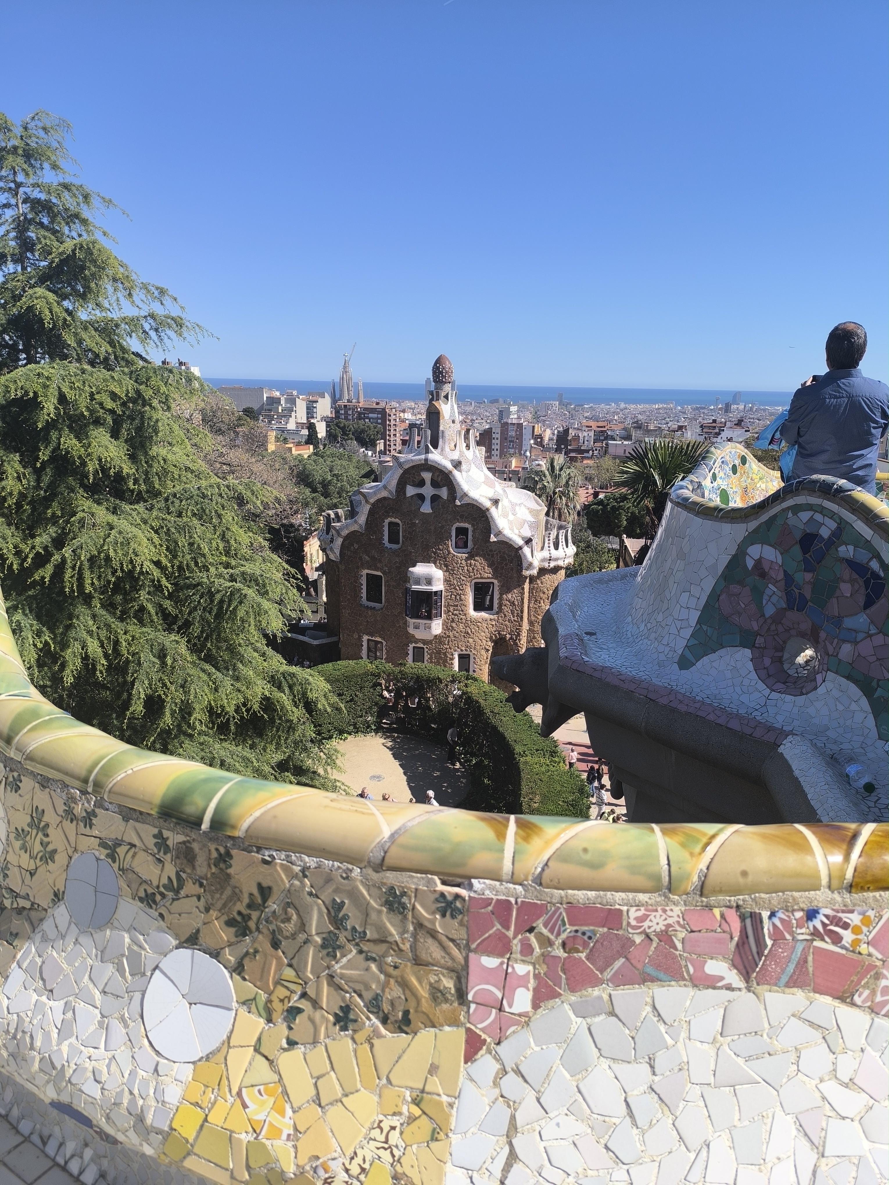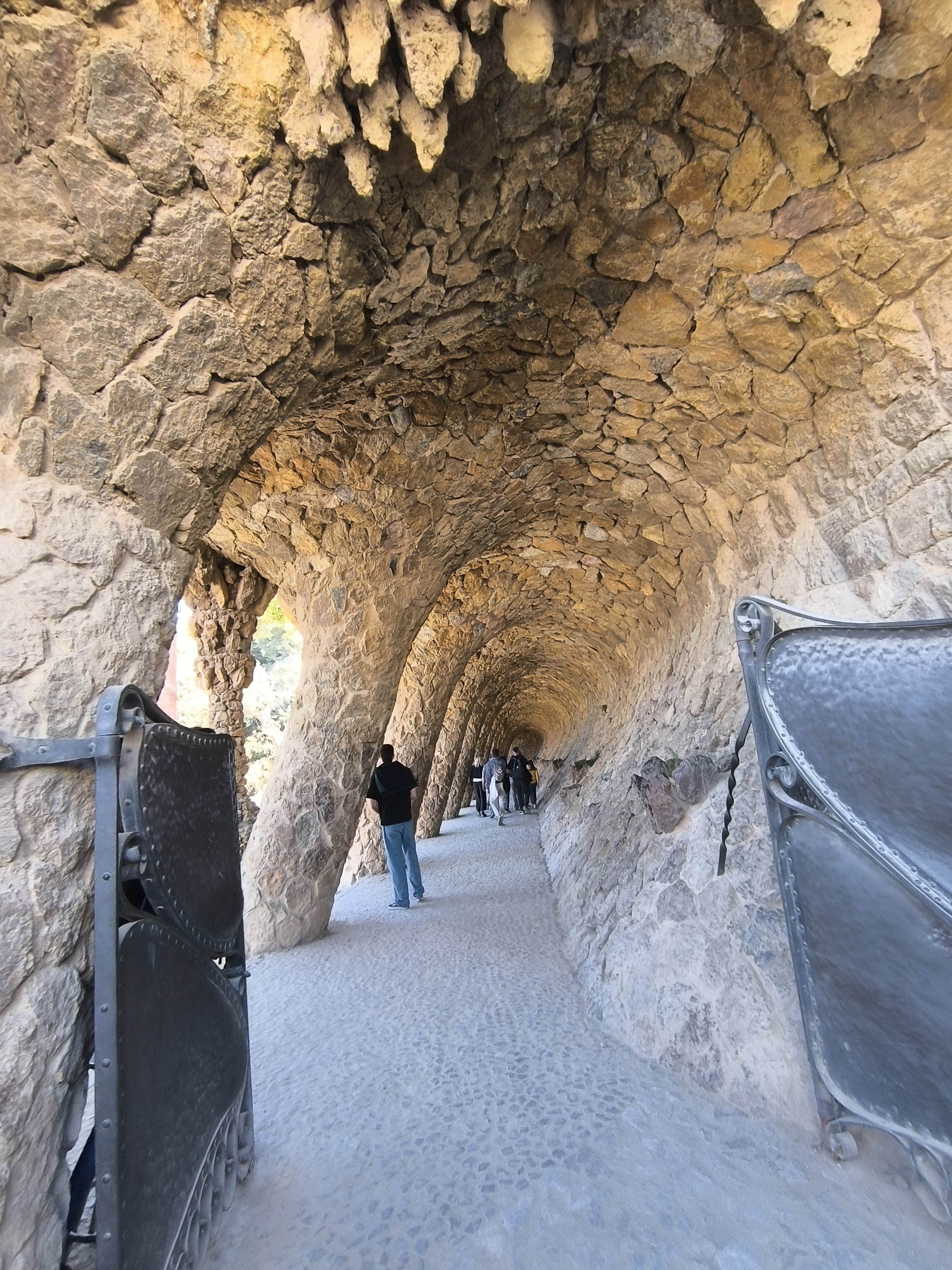 Ga aan de overkant van de Passeig de Gràcia staan en kijk hoe de steen beweegt. De kalksteen werd gewonnen met zeefossielen erin, dus het oppervlak bevat kleine schelpjes en koraalvormen. De smeedijzeren balkons, door Jujol's werkplaats uit schroot gedraaid, krullen als zeewier. Stap terug naar de Provençahoek om de hele golf in één foto te zetten.