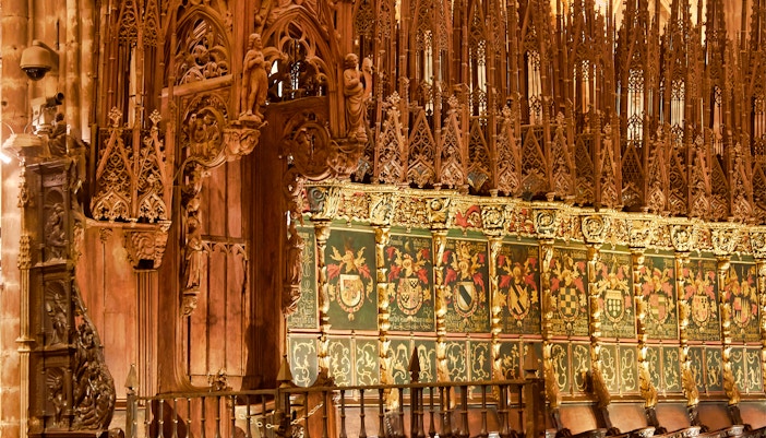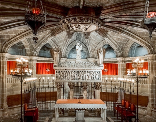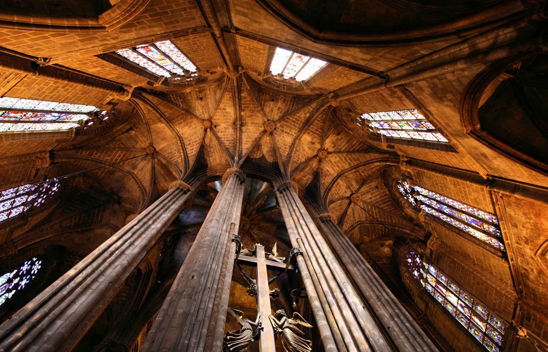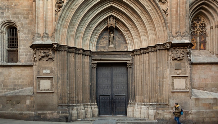 Wewnątrz kaplic katedry w Barcelonie znajduje się wiele gotyckich obrazów tworzących ołtarze. Niektórzy godni uwagi artyści zaangażowani w projekt to Guerau Gener, Gabriel Alemany, Bernat Martorell, Lluis Borrassà, by wymienić tylko kilku. Jednym z takich arcydzieł jest "Ołtarz Przemienienia" autorstwa Bernata Martorella. Spektakl przedstawia serię obrazów, w tym Chrystusa na krucyfiksie w otoczeniu swoich wyznawców, a także jego zmartwychwstanie. W muzeum katedry znajduje się również wspaniała kolekcja obrazów artystów takich jak Jaume Huguet, Pere Destorrents i Bartolomé Bermejo, który stworzył arcydzieło "Pietà", potężne dzieło przedstawiające Maryję trzymającą ciało Chrystusa po jego ukrzyżowaniu.