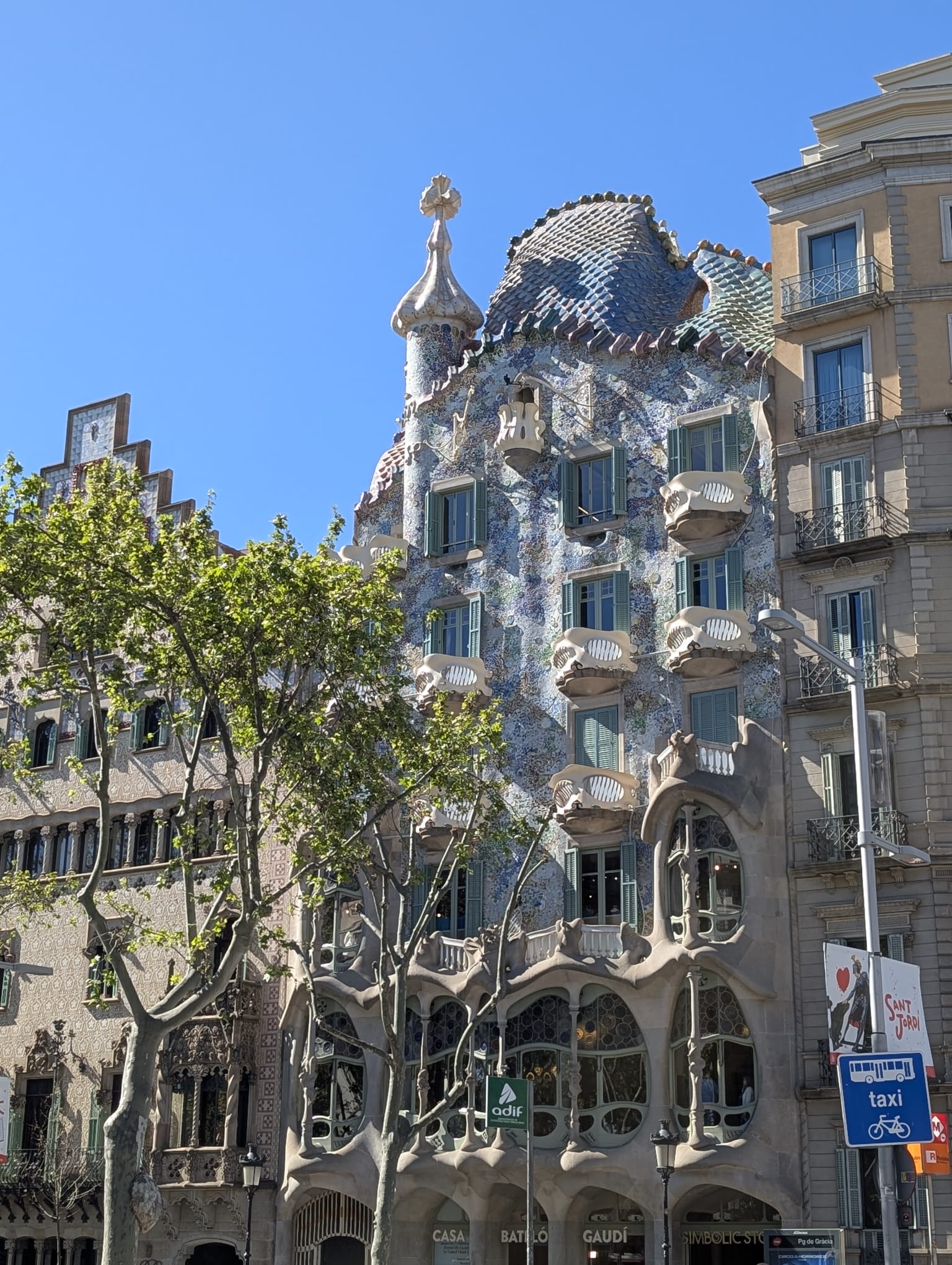 Sfat profesional: Căutați detaliile ascunse din interior - Gaudi a proiectat mobilier special pentru această casă, inclusiv ușile uimitoare din lemn care încorporează vitralii cu forme organice. Vizitați-l noaptea, când fațada este iluminată, dezvăluindu-și culorile magice.